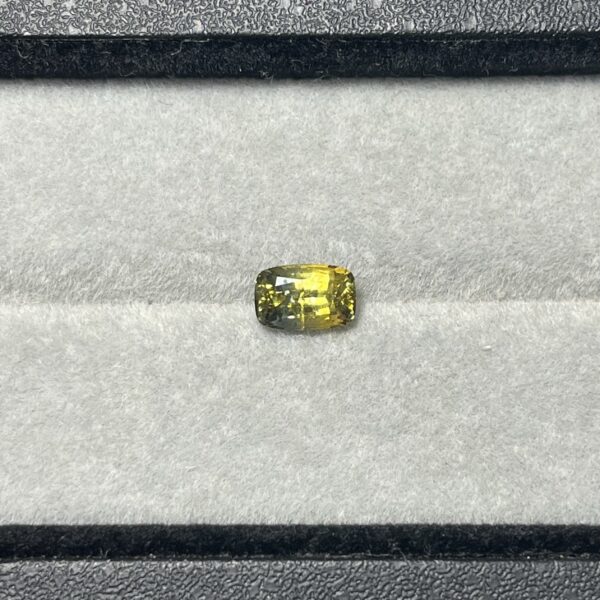 This exquisite 1.34ct natural bi-colour sapphire from Sri Lanka is a rare fusion of nature’s brilliance, showcasing a striking blend of vibrant yellow and deep blue tones within a single, mesmerizing gemstone. Expertly fashioned into a cushion cut, it offers both timeless elegance and modern intrigue, with crisp facets that highlight the natural transition between colours.