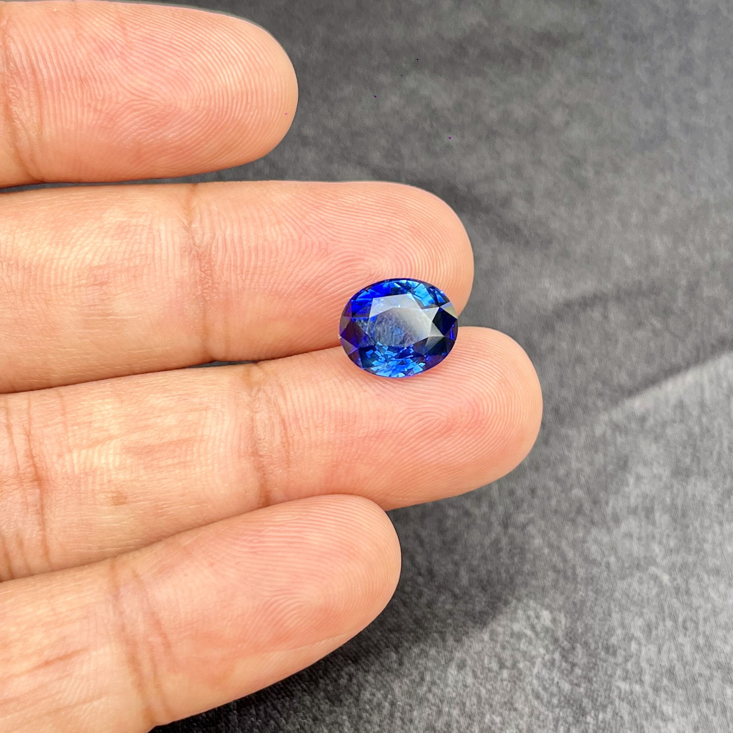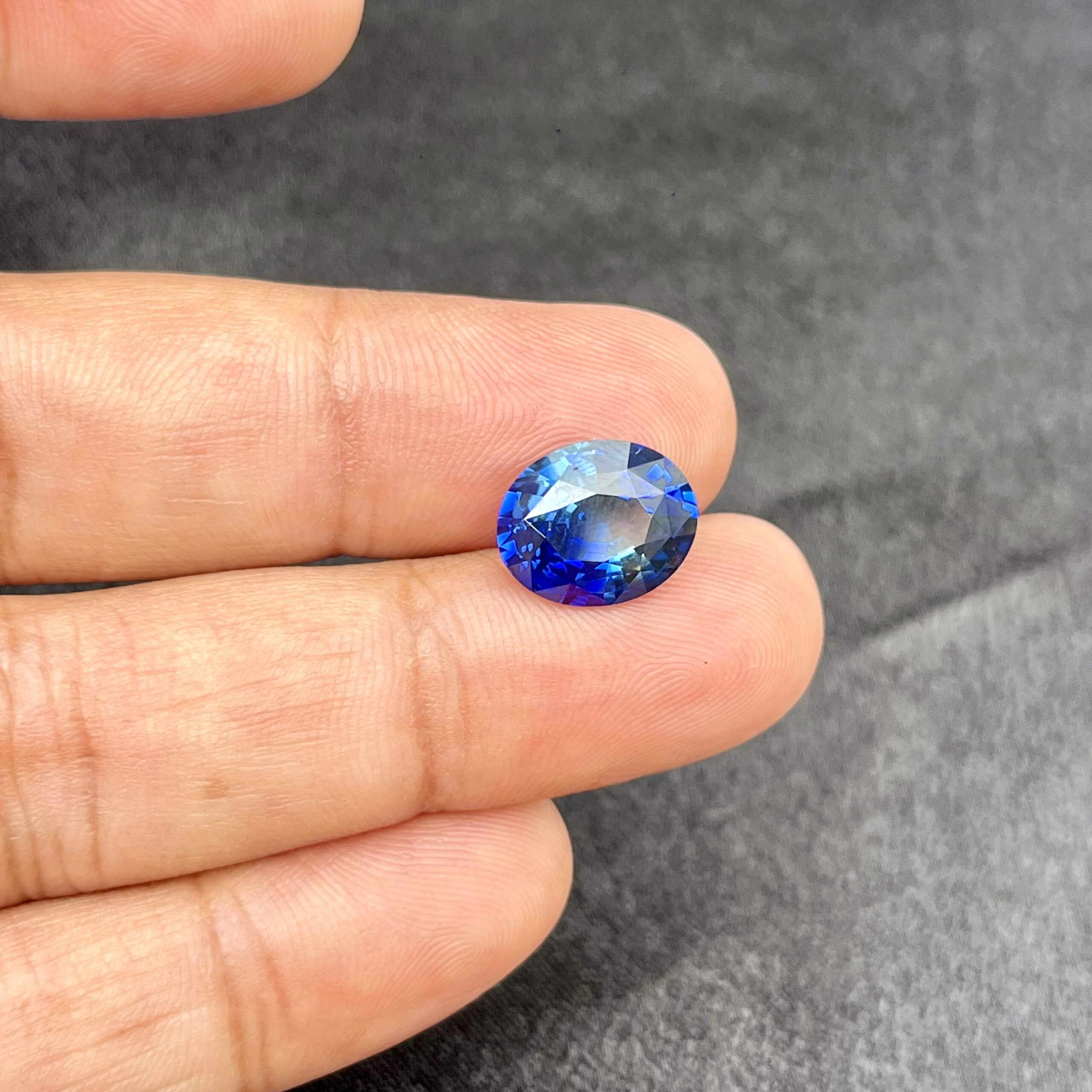 A stunning 5.45-carat natural blue sapphire from Sri Lanka, expertly crafted in an elegant oval cut. This loop-clean gem has undergone standard heat treatment to enhance its vivid color and brilliance.