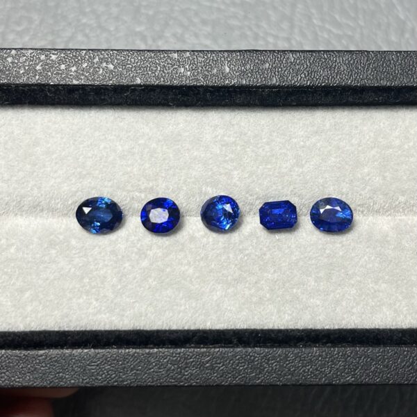 This exquisite collection of five natural sapphires, totaling 5.30 carats, offers a harmonious blend of elegance and versatility. Sourced from the gem-rich lands of Sri Lanka, each sapphire in this curated set is expertly cut in a mix of classic shapes, chosen to complement one another while showcasing the unique beauty of each stone.