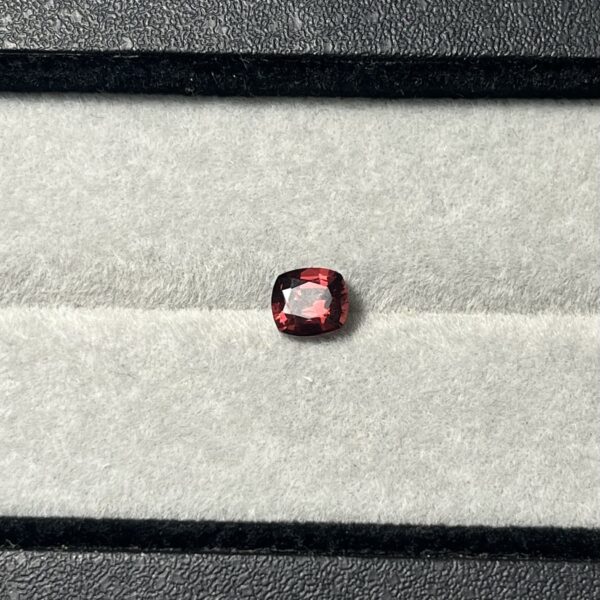 A stunning example of natural beauty, this 0.96 carat red spinal from Sri Lanka is expertly cut in a classic cushion shape, showcasing the gem’s rich potential for brilliance and depth. Noted for its loop-clean clarity, this stone reveals exceptional purity when examined under magnification, underscoring its quality and craftsmanship.