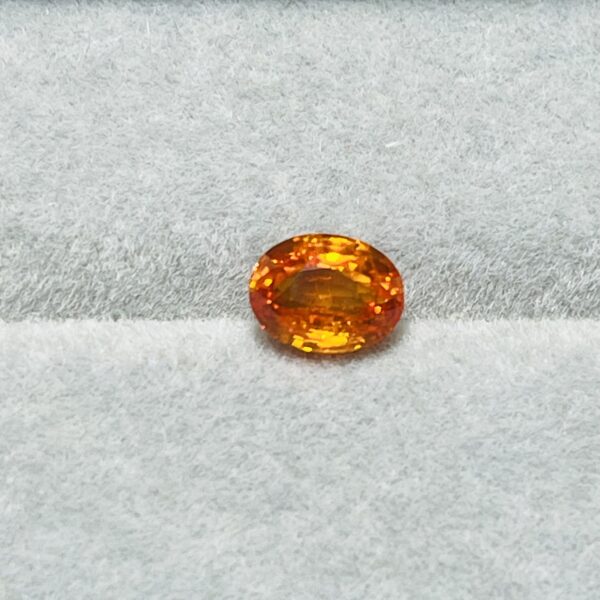 A fiery 1.58ct orange sapphire from Sri Lanka, glowing with sunset hues and exceptional clarity. Expertly cut in a graceful oval, this gem radiates warmth and elegance—enhanced by traditional heating to unveil its full brilliance.