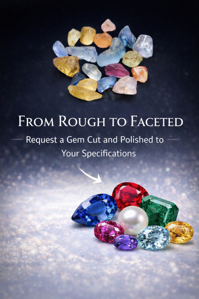 Share your unique vision with us. Beyond our curated collection, we offer exquisite uncut gemstones, expertly cut and polished to meet your custom requirements.
